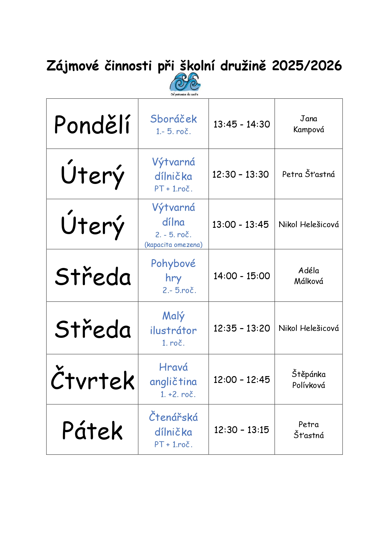 • nabídka zájmových činností 2025/2026